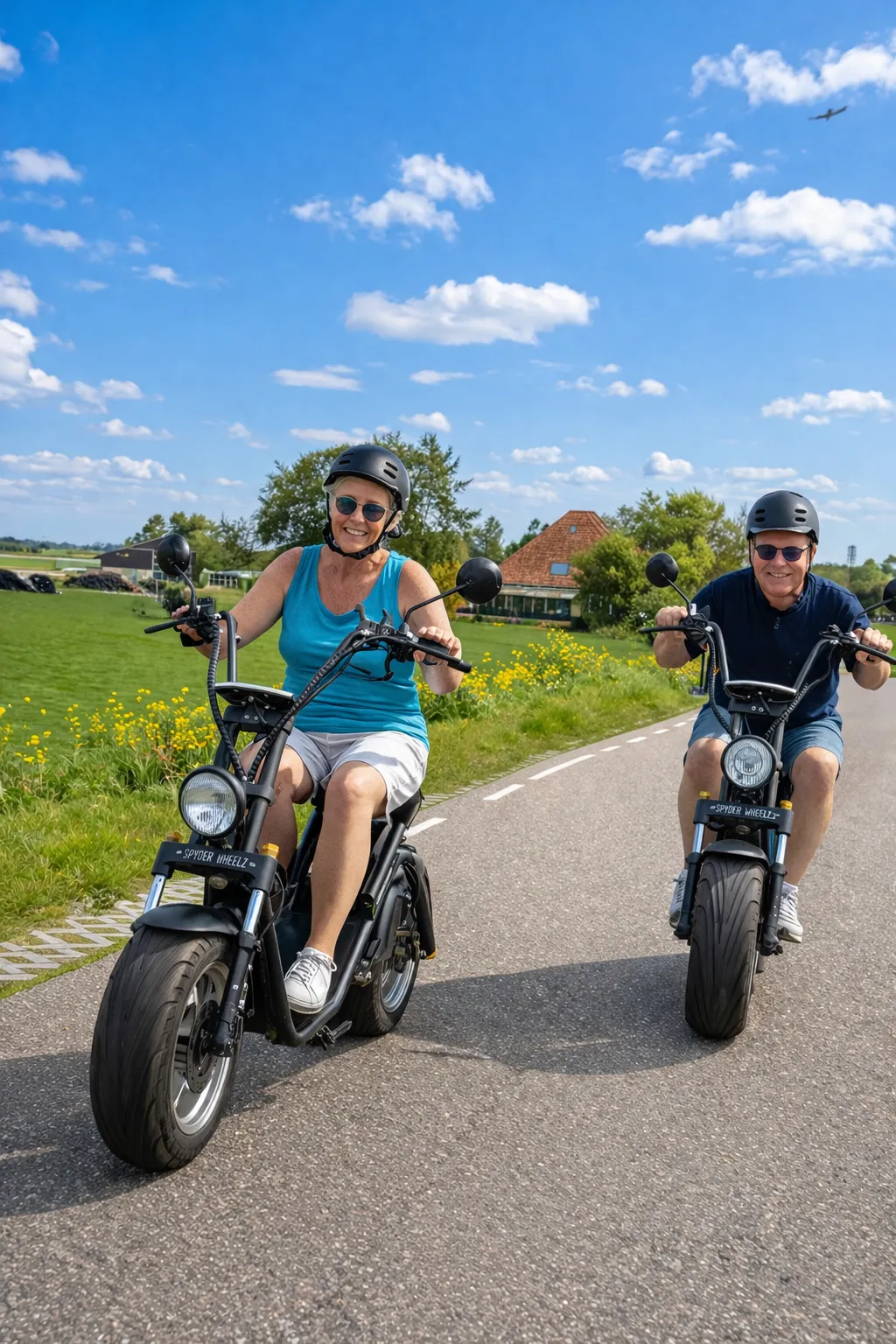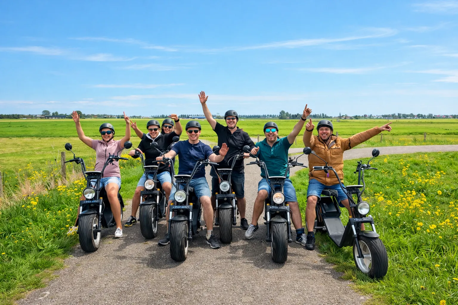 Onze E-Choppers zijn perfect voor wie op zoek is naar een origineel uitje in Noord-Holland. Vanuit De Rijp rijd je eenvoudig langs sfeervolle dorpen, landelijke weggetjes en mooie vergezichten. Of je nu met z’n tweeën op pad gaat of een groter groepsuitje organiseert, een E-Chopper tour is altijd een leuke belevenis.